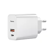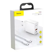 Încărcător Baseus Speed PPS Quick charger C+U 30W (With 1M C to C Cable) EU White
