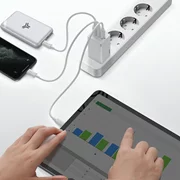 Cu ajutorul încărcătorului puteți încărca până la 3 dispozitive în același timp! În acest caz, porturile USB și USB-C 2 oferă un total de 15 W, în timp ce USB-C 1 oferă până la 45 W! Acest lucru vă permite să alimentați telefonul smartphone, tableta și Powerbank în același timp. E o mare economie de timp!