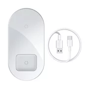Încărcător wireless BASEUS SIMPLE PRO 2IN1 WIRELESS CHARGER WHITE (6953156219052)