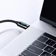 Cablul Baseus va încărca instantaneu dispozitivul cu portul de tip C. Cablul are, de asemenea, un ecran de afișare care vă informează despre intensitatea puterii. Datorită CATSK-B01 poți încărca MacBook Pro 13 în 2,5 ore sau poți trimite fișierul 1G în 24 de secunde.