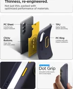 Producătorul a aplicat tehnologia Air Cushion la colțuri, creând spații de aer care absorb și mai mult impactul și protejează dispozitivul atunci când cade. Luneta colorată din jurul camerei ridică obiectivul deasupra suprafeței, oferind protecție împotriva zgârieturilor și a contactului cu diverse suprafețe, conferind în același timp designului general un aspect distinctiv și elegant. Finisajul mat asigură o prindere sigură, antiderapantă, în timp ce designul ușor și subțire înseamnă că carcasa nu încurcă utilizarea zilnică.