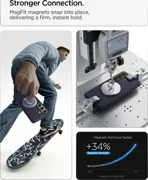 Spigen Nano Pop MagSafe este o husă elegantă care se distinge prin designul său contrastant în două tonuri și prin nivelul ridicat de protecție. Poliuretanul plăcut la atingere și durabil protejează dispozitivul de zgârieturi și amprente, menținând un aspect estetic plăcut pe o perioadă lungă de utilizare. Modelul intern de protecție dispersează șocurile de la impacturi, minimizând riscul de deteriorare a telefonului în urma căderilor accidentale.