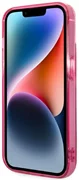 Husă roză rigidă Karl Lagerfeld cu grafică IMD rezistentă, margini TPU/PC și decupaje precise pentru iPhone 14 Pro Max. Protecție contra zgârieturilor și șocurilor.