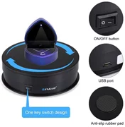 Suportul are un singur buton pe care îl utilizați pentru a-l activa, dezactiva sau schimba direcția de rotație. PU3048B se rotește la 360°, permițându-vă să vizualizați produsul pe ecran din toate părțile. În plus, suportul este echipat cu un tampon anti-alunecare, astfel încât să îl puteți pune pe o suprafață netedă fără griji.