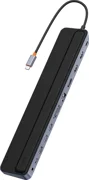 Interfața impresionantă a hub-ului rezolvă problema lipsei de spațiu pentru conectarea dispozitivelor suplimentare la laptop. Produsul oferă un port USB-C conceput pentru încărcare rapidă PD de 100 W, porturi 4K HD2, 4K HD1 și DP cu ajutorul cărora puteți conecta până la 3 ecrane suplimentare la laptop. De asemenea, aveți la dispoziție intrări pentru carduri TF/SD, 3 x USB 3.0, USB-C, astfel încât să puteți transfera ușor și rapid date de pe carduri sau unități flash pe laptop. Nu lipsesc nici un port pentru căști audio de 3,5 mm și o intrare RJ45 pentru un cablu de rețea.