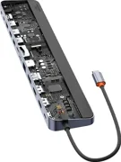 Puteți crește cu ușurință capacitățile MacBook-ului dvs. cu ajutorul hub-ului de marcă Baseus. Produsul oferă până la 12 porturi suplimentare, suportă protocoale de încărcare rapidă și permite transmiterea de date de mare viteză. Se remarcă prin designul său solid și bine gândit, datorită căruia vă va servi și ca suport pentru laptop.