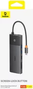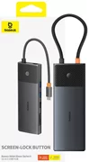Adaptorul Baseus Metal Gleam HUB USB-C 11 în 1 Baseus Metal Gleam HUB USB-C 11 în 1 este un dispozitiv compact care poate extinde semnificativ capacitățile laptopului sau ale computerului dvs. de birou. Construit din aliaj de aluminiu durabil, nu numai că arată foarte bine, dar este și robust și pregătit pentru utilizarea zilnică. Cu capacități de transfer de date și de încărcare ultrarapide, capacitatea de a lucra pe ecrane triple, citirea simultană a cardurilor SD/TF3.0 și un buton de închidere a ecranului, acest hub devine un instrument neprețuit atât la locul de muncă, cât și acasă. Lungimea cablului de 85 mm, dimensiunile sale compacte (145 x 51 x 12 mm) și designul ușor (aproximativ 120 g) îl fac ușor de luat cu dvs. oriunde aveți nevoie de el.