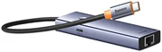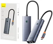 Hub-ul Baseus UltraJoy Series Lite cu 4 porturi este un accesoriu versatil și foarte funcțional. Cu patru porturi USB 3.0 care oferă viteze de transfer de date de 5GB/s, este soluția perfectă pentru cei care caută performanță și mobilitate. În plus, dispune de un port RJ45 potrivit pentru cabluri Ethernet. Aplicarea tehnologiei Baseus Cooling Technology (BCT) asigură o temperatură optimă de funcționare, în timp ce circuitele integrate inteligente și cele patru straturi de plăci imprimate cu protecție completă a carcasei protejează împotriva interferențelor și a descărcărilor electrostatice. Dimensiunile sale compacte, designul ușor și cablul durabil îl fac ideal atât pentru utilizarea acasă, cât și în călătorii. Cablul hub-ului se termină cu un conector USB-C.