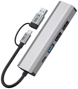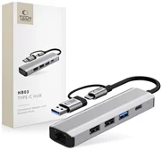 Adaptorul HUB 5in1 Tech-Protect HB03 este un dispozitiv compact, multifuncțional, potrivit pentru toate computerele care acceptă porturi USB-C și USB-A. Datorită construcției sale robuste din aluminiu și ABS, adaptorul este ușor, dar rezistent la deteriorări și durabil. Dispozitivul este echipat cu șase porturi care oferă o varietate de funcții.