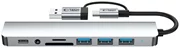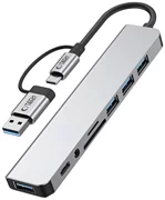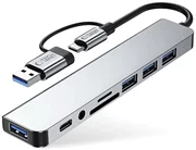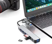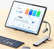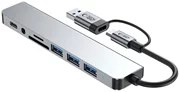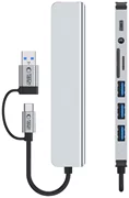 Adaptorul este echipat cu patru porturi USB-A cu viteze diferite: două porturi USB 2.0 pentru transfer de date de până la 480 Mbps și două porturi USB 3.0 pentru transfer rapid de până la 5 Gbps. Dispozitivul are un port USB-C dedicat transferului de date. Adaptorul este echipat cu o ieșire audio de 3,5 mm pentru conectarea căștilor sau a difuzoarelor și un port Ethernet RJ45 pentru comunicarea în rețea prin cablu. În plus, acesta include un cititor de carduri de memorie care acceptă atât formate SD, cât și TF (microSD).